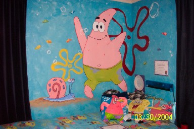Patrick, Gary, and even the Crusty Crab. No, that's not wallpaper, Sherry painted it all!