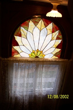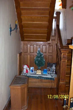 What else to say? I love these stairs, with all the wood, and the stained glass flower at the landing. But it means for a lot of climbing.