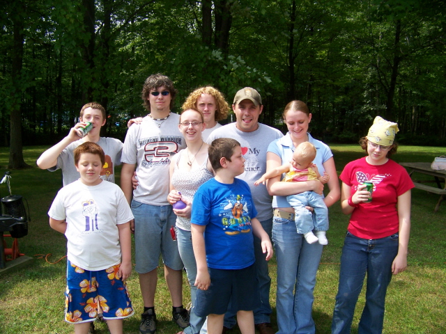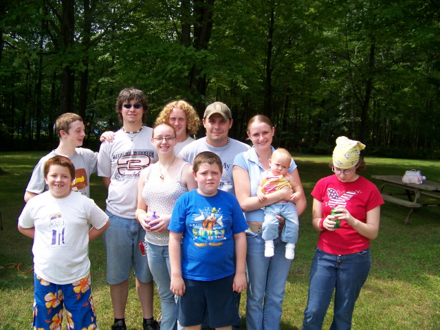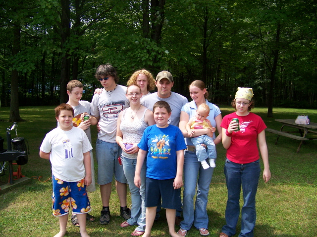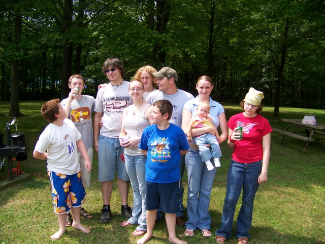 The four pictures above are my kids and their families. It's hard to get them to stay put for a picture, hence it took four tries to get all of them reasonably OK in at least one. Front: Drew, Briana, Brett, Stephanie (holding Kaylie) and Rebecca Back: Ryan, Lance, Kyle and Jerome