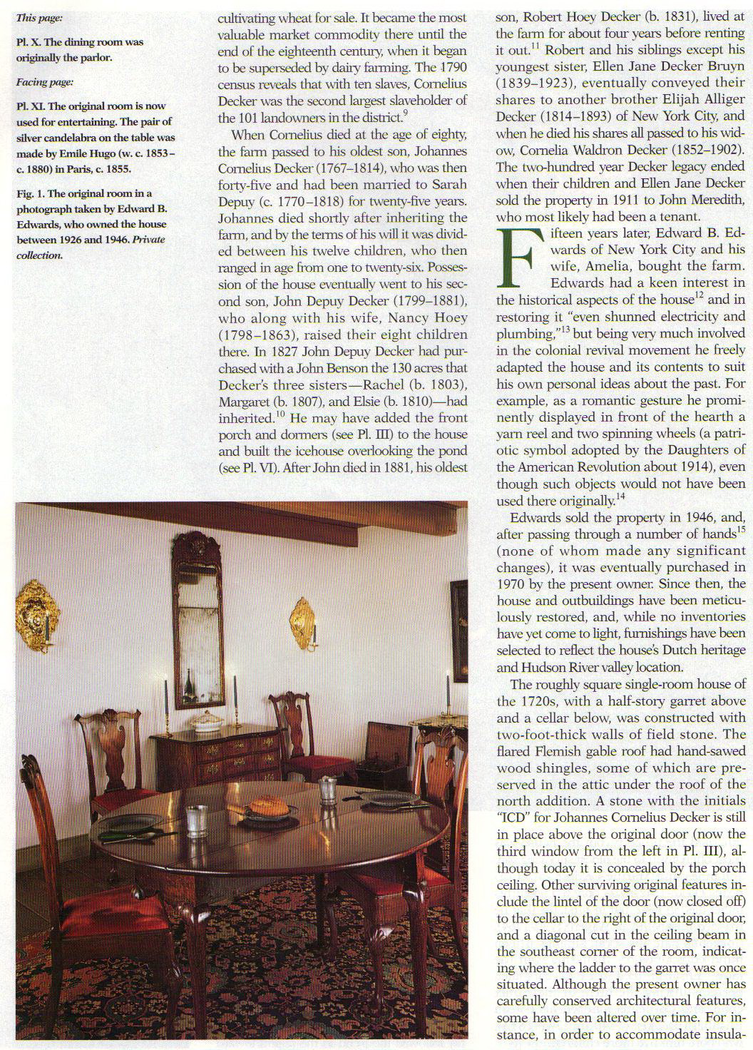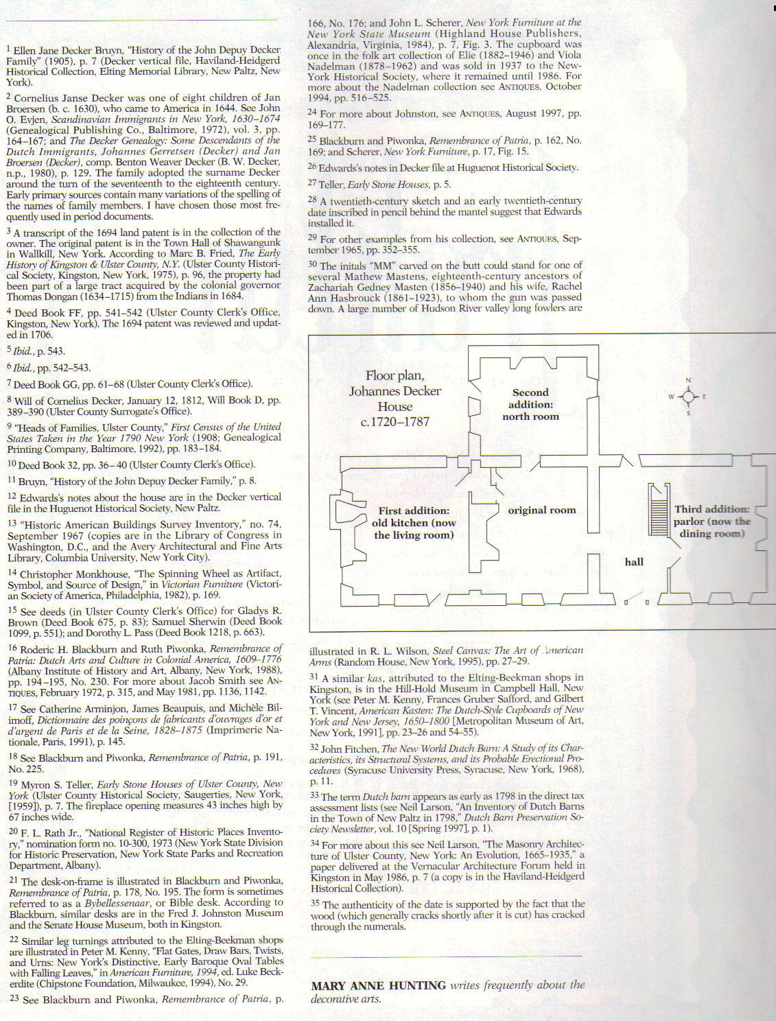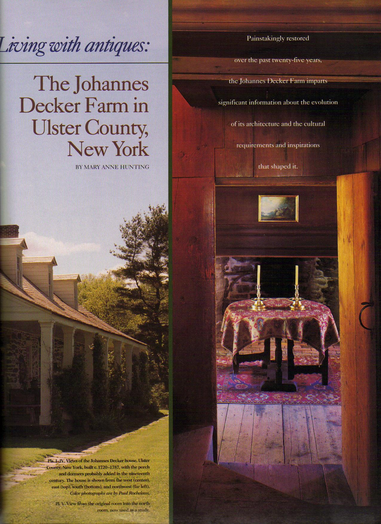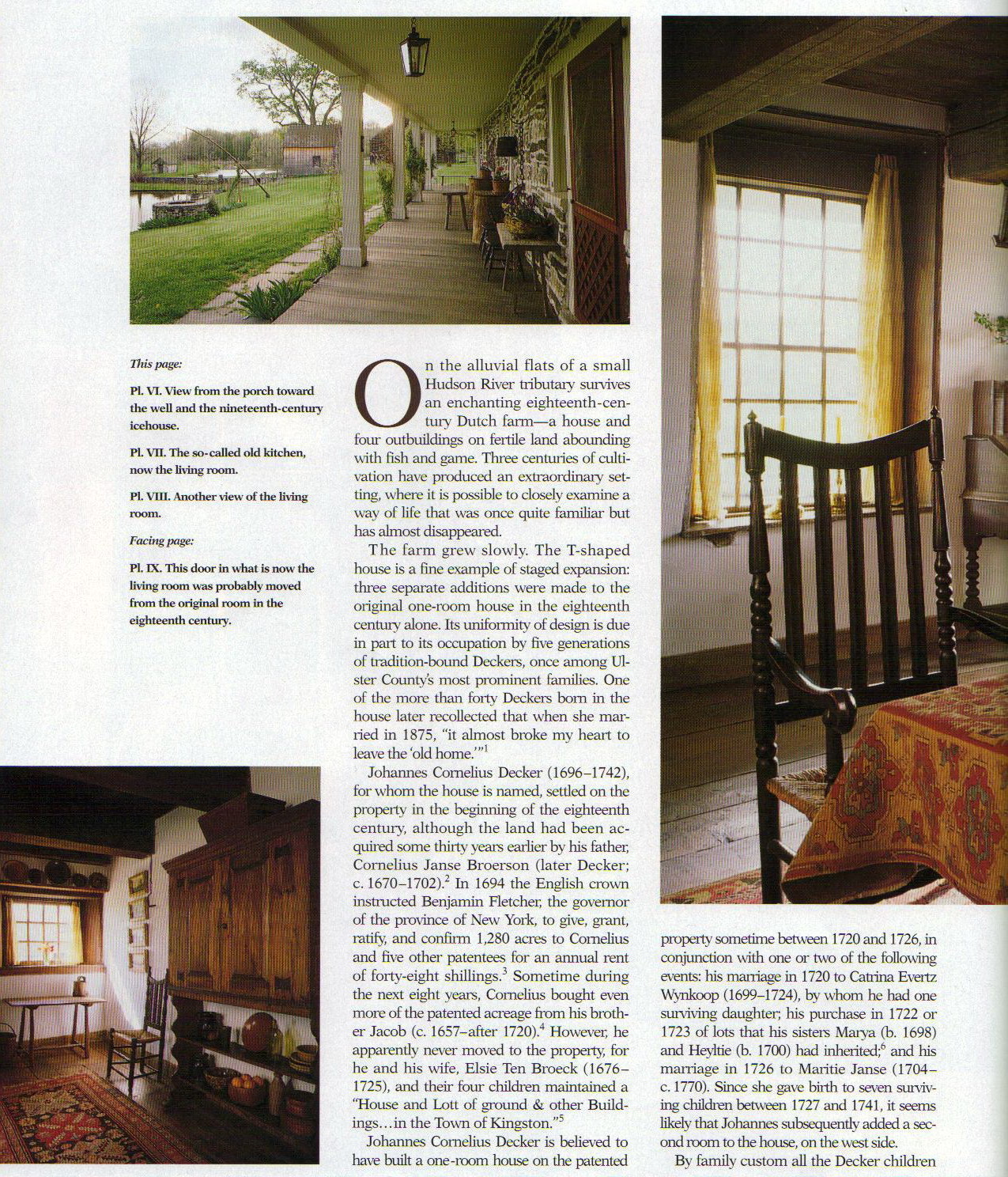 Decker House Extracted from Antiques, The Magazine, April 1998, Brant Publications, New York by Mary Anne Hunting. Pages 572-581. Thanks to Wayne Decker for providing me with this article. (Click on an image to see it full size - each image will open in a new window. You may need to then click on the image in the new window to see it full size.) |